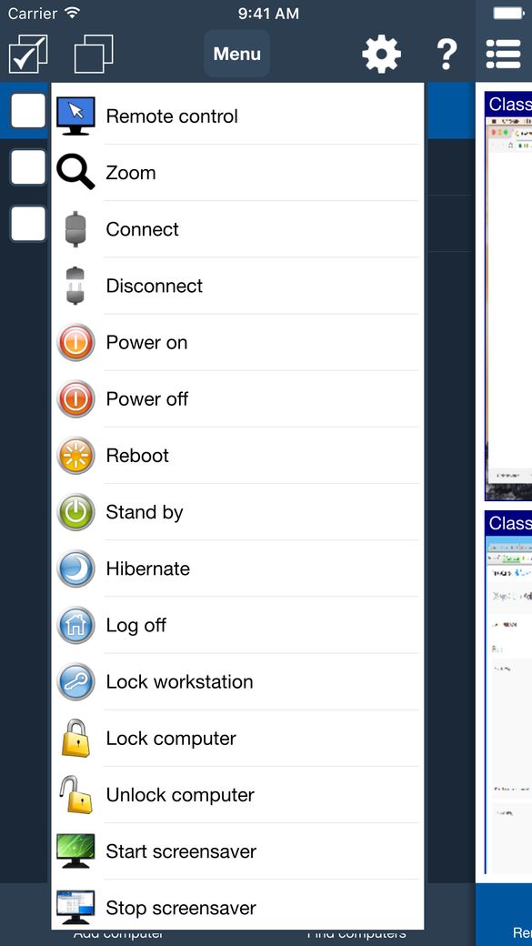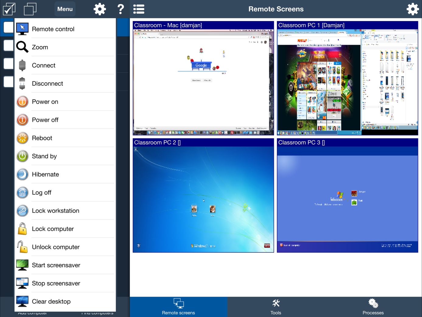 Phone See Student ScreensPhone Reboot, WOLPhone Administrator ToolsPhone Supervise UsersPhone List ApplicationsPhone Kill Process